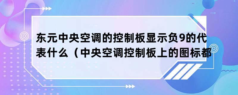 东元中央空调的控制板显示负9的代表什么E1:压缩机高压保护。当室外环境温度高于43℃时,开始降温。3.室外风机不转或转慢:解决方法、风机更换、风机电容。高压保护故障:解决方案,积雪过多,高压保护器损坏,信号线断裂或室内机控制面板损坏。以上解答不能解决您的问题,请网页或电话咨询师傅上门解决!